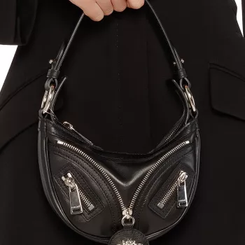 Versace Black Calf Leather Mini Hobo Shoulder Bag with Medusa Logo