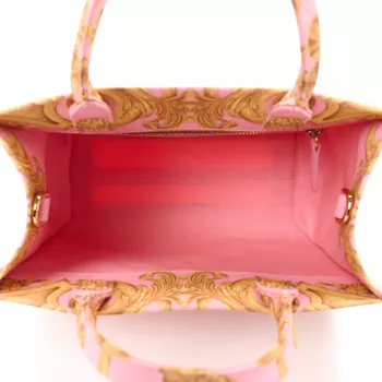 Versace Pink and Yellow Baroque Tote Bag with Detachable Shoulder Strap