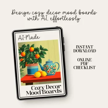 AI-Made Cozy Decor Mood Boards Checklist | how to use AI to generate cozy table decor mood boards | Digital Download for Tablescapes & Interior Styling