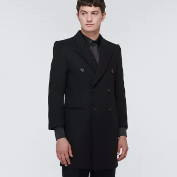 Saint Laurent Double-Breasted Wool Coat with Spear Lapels