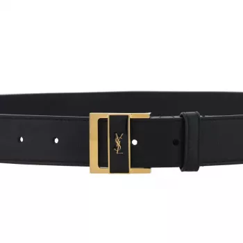 Saint Laurent Leather Gio Belt with Gold YSL Cassandre Logo Plaque