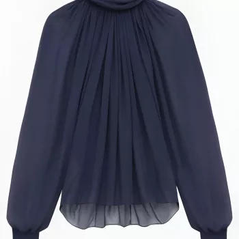 Saint Laurent Elegant Semi-Transparent Silk Blouse with Mock Neck and Ruffle Details