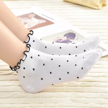 Women’s Cute Crimped Ankle Socks with Stripes, Dots & Hearts