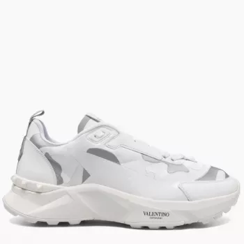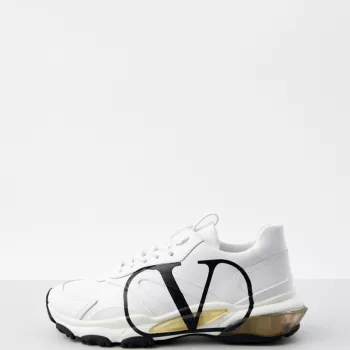 Valentino Garavani White Calfskin Sneakers with Logo and Yellow Rubber Detail