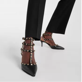 Valentino Garavani Leather Rockstud Pumps with Triple Buckle Closure
