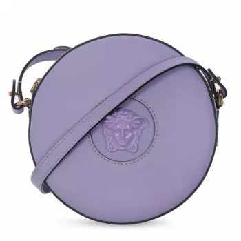 Versace Purple Disco Round Calf Leather Shoulder Bag with Medusa Logo