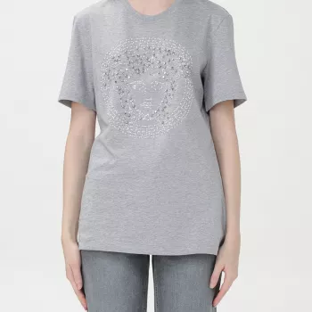 Versace Cotton T-Shirt with Iconic Logo and Jewel Detail