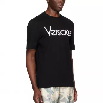 Versace Cotton T-Shirt with Embroidered Monogram and Ribbed Crew Neck