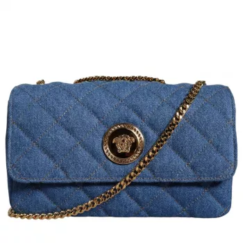 Versace Blue Crossbody Bag with Adjustable Strap and Logo Hardware
